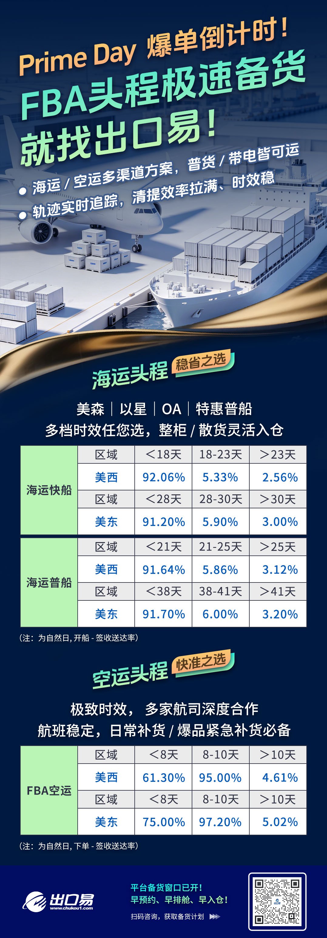 出口易贴心提示:根据以往卖家备货紧急程度,海运大批量铺货 + 空运灵活补货的组合策略往往是最佳方案。
